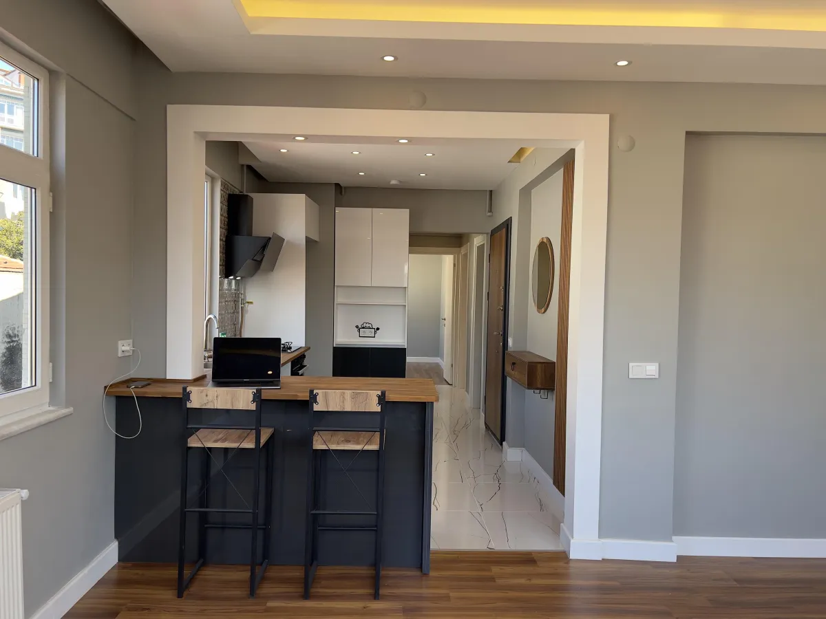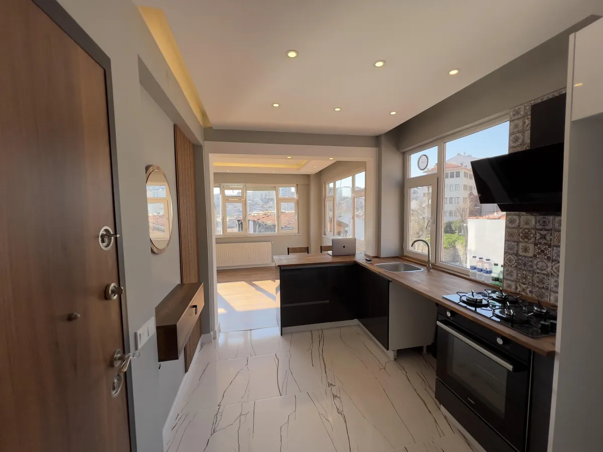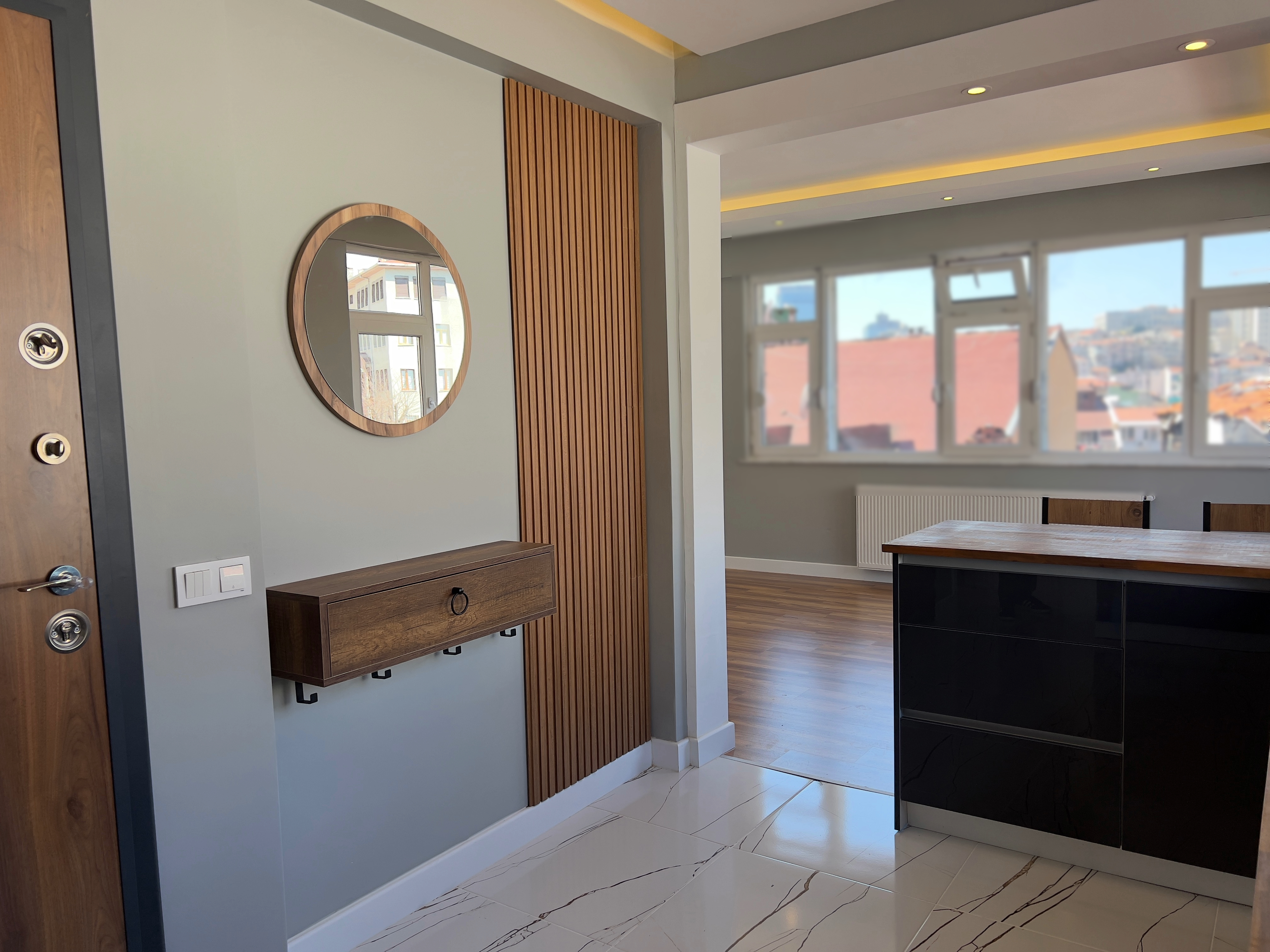 seramiklerle daha kullanışlı ve modern bir ortam yaratıldı. Daire içindeki tüm döşeme kaplamaları